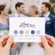 Featuring a curated dusty blue color palette with soft neutrals and slate accents, this card offers a tasteful way to suggest coordinated wedding attire while maintaining a timeless, elevated aesthetic.