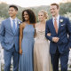 Elegant dusty blue wedding dress code card featuring refined script typography and a minimalist layout. Includes a color palette guide and QR code area for additional wedding details. Perfect for modern, classic, and black-tie weddings.