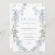 ¡Algo azul antes que yo! Comencemos con la invitación a la ducha de novia con flores silvestres azul pastel, que son la forma perfecta de celebrar la futura novia con un tema de ducha de novia con motivos florales azules. Estas delicadas y claras duchas florales de flores son personalizable, por lo que puedes añadir todos los detalles sobre la ducha azul de novia. La invitación MARLAIS a la ducha de flores azul pastel con flores de flores de matrimonio presenta un diseño clásico con fondo blanco y flores de acuarela en tonos pastel de azul polvoriento, blanco y verde en una elegante corona, acompañada de un guión manuscrito y elegantes fuentes sans serif en un azul claro y gris para añadir interés visual a sus delicadas invitaciones a la ducha de novia floral azul. Este amor azul está en la ducha de bodas en flor que invita a tu algo azul antes de la ducha de novia. También hay una parte trasera con flores azules.