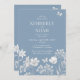 Elegant botanical dusty blue and white watercolor wildflowers and butterflies spring summer chic romantic garden wedding invitation template in a pastel delicate palette of periwinkle blue and white. Digital download available.