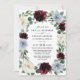 Dusty Blue and Burgundy Boho Fall Rehearsal Dinner Invitation - con un elegante eucalipto y una flor verde decorada con marfil/blanco, azul/pizarra/acero y flores de arándano/arándano. Vea la colección coincidente en esta página para encontrar productos de coordinación.