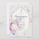 Esta elegante y moda invitación a la quinceañera tiene un fondo gris claro con flores rosas, violetas y azules en acuarela rodeadas de falsos marcos hexágonos de oro. El reverso presenta un fondo lila polvoriento/violeta. Personalízalo para tus necesidades. Puedes encontrar productos coincidentes en mi tienda.