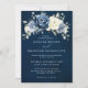 Invitación a la boda con flores de un azul oscuro, con un elegante ramo de azul marino, azul real, blanco , dorado, marfil de champán, rosa de color rubor , flores de ranunculus y hojas de eucalipto verde salado y elegante ramo de acuarela. Comuníquese conmigo para obtener ayuda sobre la personalización o si necesita cualquier otro producto con este diseño.