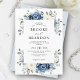 Invitación a la boda con flores de un azul oscuro, con un elegante ramo de azul marino, azul real, blanco , dorado, marfil de champán, rosa de color rubor , flores de ranunculus y hojas de eucalipto verde salado y elegante ramo de acuarela. Comuníquese conmigo para obtener ayuda sobre la personalización o si necesita cualquier otro producto con este diseño.