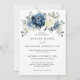 Invitación a la boda con flores de un azul oscuro, con un elegante ramo de azul marino, azul real, blanco , dorado, marfil de champán, rosa de color rubor , flores de ranunculus y hojas de eucalipto verde salado y elegante ramo de acuarela. Comuníquese conmigo para obtener ayuda sobre la personalización o si necesita cualquier otro producto con este diseño.