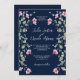 Invitación Dusty Navy Blue Pink Hibiscus Bloom Shower