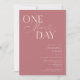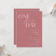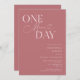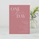 Invitación a la cena de bodas minimalistas con texto de tipografía que dice "un día más". El fondo es rosa polvoriento.