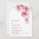 This elegant contemporary wedding invitation features watercolor painted dusty pink flowers on a white background.