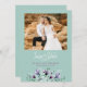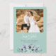 Esta boda morada y floral verde salva la tarjeta de cita es tan romántica. El abundante ramo acuático es un acento perfecto para tu fotografía favorita. El código QR facilita a los clientes la obtención de detalles para su día especial
