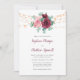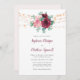 Estas invitaciones florales a la boda presentan un diseño acuático con rosas polvorientos de color rosa y burdeos, flores, hojas de eucalipto y luces de cuerda. Personalízalos con tu texto. Productos a juego disponibles.