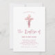 Invitación Dusty Rosa Cruz Floral | Bautismo rosado bonito