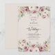 A romantic design features soft, painterly blooms in shades of dusty rose, cream, and pale green. Delicate leaves intertwine with blooming roses and other floral elements, creating an ethereal and elegant feel. The overall aesthetic evokes a gentle, artistic sentiment for a special occasion.