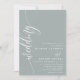 Invite a sus seres queridos a celebrar su día especial con esta elegante y polvorienta invitación a la boda. Con un diseño minimalista con un hermoso guión caligráfico para la palabra "boda" y una tipografía limpia y moderna para los detalles, esta invitación marca el tono para un evento sofisticado y memorable. El suave color de sabio polvoriento y las líneas simples le dan un toque de gracia y refinamiento, lo que lo convierte en el lugar ideal para una elegante celebración boda. Personalizar los detalles para crear una invitación única y hermosa para tu día de boda.