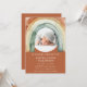 Honor the memory of your loved one with this serene and comforting rainbow funeral announcement. The soft watercolor rainbow design, featuring warm earth tones, cradles a cherished photo of your baby. This invitation serves as a gentle reminder of hope and peace during a difficult time, offering solace to family and friends as you commemorate a life beautifully lived. The back of the announcement provides space for additional details about the service or reception, ensuring all necessary information is shared with loved ones..