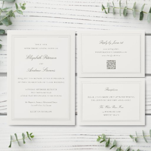 Invitación Ecru Formal Romance Modern Classic Triple Wedding