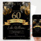 Invitación Editable 60th Birthday Invitation: Black & Gold Ba