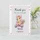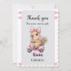 Editable baby shower thank you card featuring a cute capybara riding a pink scooter. Personalize with name and date for a sweet baby girl celebration.
