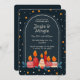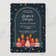 This editable template makes it easy to customize every detail — event name, date, time, location, and personal message. The rich navy background and cheerful candle illustration create a warm and inviting atmosphere that fits modern, whimsical, and cozy holiday themes beautifully.