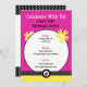 Esta adorable invitación para fiesta en rosa y amarillo brillantes presenta margaritas juguetonas, puntos y mariquitas en sus elementos de diseño. La plantilla hace que sea fácil para ti crear tus propias invitaciones personales. La parte trasera tiene un área opcional para detalles adicionales de la fiesta o notas, que se pueden personalizar o eliminar si no es necesario, dejando un simple fondo de lunares.
