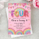 Invitación Editable Pink Rainbow Sequin 4th Birthday Invitati
