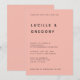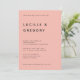 La estética: Abraza un resplandor cálido y contemporáneo con esta invitación de boda de durazno y negro, que presenta tonos sutiles de coral que crean una atmósfera acogedora y soleada. Diseñada para la pareja que valora una estética juguetona pero limpia, el vibrante fondo de durazno proporciona un lienzo de alto contraste para la tipografía negrita y en estilo de galería. El diseño inspirado en editoriales utiliza la fuente contemporánea Dongle en tipografía negrita y en mayúsculas para crear un aspecto de galería que es a la vez atemporal y sorprendentemente actual.
