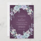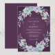 Deep eggplant tones provide a dramatic backdrop for this flourishing floral design. The artwork showcases a rich array of watercolor hydrangeas, anemones, and sprigs of eucalyptus in a palette of lavender, pale blue, and mint green. This atmospheric botanical arrangement evokes a sense of romantic elegance and natural beauty.