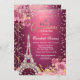 Invitación Eiffel Tower Diamonds Roses Red Quinceanera
