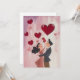 Un ilustracion encantador, de estilo animado, de una pareja perdida en un momento de alegría y afecto, rodeado de corazones rojos vibrantes flotando sobre un suave fondo rosado. La pareja, vestida con atuendo vintage, se mira entre sí con expresiones de amor y felicidad, capturando la esencia caprichosa del romance.
