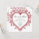 Capturar el romance eterno con nuestra invitación a la ducha de novias inspirada en el estilo vintage "el amor está en flor". Este elegante diseño cuadrado presenta un fondo blanco que evoca el encanto clásico de la época victoriana. En el centro, un impresionante corazón floral de una chinoiserie roja oscura sostiene los detalles de sus bodas en una tipografía bellamente vintage. La parte trasera muestra un corazón floral a juego, creando un diseño cohesivo e inolvidable. Perfecto para parejas que aman la elegancia del mundo antiguo con un toque moderno. Creado por Simply Farmhouse Press.