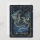 Presentamos nuestra invitación a la Boda de Tragón Escrita en Estrellas - Tarot, donde los reinos mágicos del tarot y el mundo mítico de los dragones se unen sin problemas. Este tema místico, mítico y romántico muestra a dos dragones enamorados, haciendo eco del simbolismo de la carta del tarot "Los amantes". Ideal para bodas con una temática mística o medieval, para aficionados al tarot, aficionados a Juego de Tronos y aficionados al dragón por igual. La inclusión de monogramas realza el encanto de la invitación. El diseño, con una decoración clásica en tonos azul oscuro y dorado, desprende elegancia celeste, con detalles intrincados tanto en el frente como en la parte posterior. La redacción es completamente editable. Puede cambiar el tamaño, el color, el tipo de letra, la posición en la página.