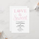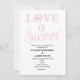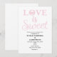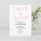 EL AMOR ES DULCE Invitaciones de compromiso modernas rosadas y blancas. El color de fondo se puede cambiar a cualquier color.