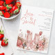 Elegante champán y fresa Boho Rubor Invitación a ducha de novias de verano rosado con caligrafía "El amor es dulce"