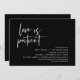 Esta es la invitación de la fiesta de la boda Tarjeta reprogramada (pospuesta) (el amor es paciente), cambiar la tarjeta de fecha, en el moderno minimalismo romántico simple diseño elegante tema negro. Es la manera perfecta de hacer que el evento reprograme la invitación (ahorre nuestra nueva fecha) a sus amigos y familiares.