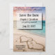 Nuestro amor es tan profundo como el océano salva la invitación a la boda. Esta hermosa escena de puesta de sol en la playa es la manera perfecta de anunciar sus planes bodas y hacer saber a alguien que son tan especiales que necesitan guardar la fecha en su calendario. Se dibujan dos corazones en la arena para representar tu amor. Ideal para un boda en el océano.