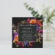 Elegante y audaz floral moderna contiene flores moradas, naranjas y burdeos sobre un fondo negro. Este audaz marco botánico rodea un marco dorado redondo. Tu amor está en la ducha de novias Bloom los detalles están en blanco brillante. En la parte trasera de la invitación aparece LOVE escrito en letras decorativas y adornado con flores. Esta invitación a un almuerzo nupcial es parte de la colección de duchas nupciales de la medianoche. No dudes en enviarme un mensaje si necesitas ayuda para encontrar elementos coincidentes.