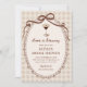 Celebrar que la novia esté con este amor es preparar la invitación a la ducha de novia Espresso Martini. Diseñado con una moda acuarela espresso martini, granos de café, un marco vintage de arco dibujado a mano y fondo de gingham beige, este tema inspirado en la cafetería le da un encanto acogedor a su celebración. Perfecto para una ducha nupcial de otoño o un brunch casero rústico con temática de café, esta plantilla caprichosa es fácil de personalizar.