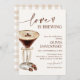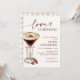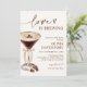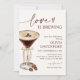 Celebrar que la novia esté con este amor es preparar la invitación a la ducha de novia Espresso Martini. Con una acuarela de moda espresso martini atada con un arco de cinta, granos de café y un fondo de manta neutra, este diseño inspirado en la cafetería le aporta un cálido encanto a su celebración. Perfecto para una ducha nupcial de otoño o un brunch martiní rústico con temática de novia, esta elegante plantilla es fácil de personalizar.