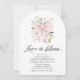 Haga que la futura novia se sienta especial con esta elegante invitación fotográfica en forma de arco, con un delicado arco rosado, suaves flores de acuarela y un espacio fotográfico personalizado. Perfecto para una ducha con flores, jardín o una ducha de matrimonio con temática de coqueta, este diseño añade un toque elegante y sentimental. Personalizable fácil para imprimir o compartir digital, ¡es una hermosa manera de invitar a los seres queridos a celebrar a la novia! 💕 📸 🥂