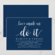 Tarjeta de invitación temática de escritura en azul marino rústico moderno (con título de tarjeta: El amor nos hizo hacerlo). Es perfecto para su recepción de boda elopamiento / fiesta de celebración post boda. Agregue sus detalles en fuente / letra negra a juego.