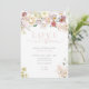 ¡El amor en flor! Nuestras invitaciones para la ducha de novias con flores silvestres de color rosa DIY son la manera perfecta de celebrar a la futura novia con el tema del amor en la flor de la ducha de novias. Este amor floral de primavera está en la floración de la ducha de boda invitan al personalizable, por lo que puedes añadir todos los detalles importantes sobre el amor pastel en la ducha de novia. El amor por la flor silvestre de la primavera de THALLO está en la flor de la ducha nupcial. Presenta un diseño femenino con fondo blanco y flores silvestres acuarelas en tonos suaves de primavera, desde rosa y lila hasta crema y verde polvoriento, junto con fuentes de escritura serif clásicas y manuscritas en rosa y gris. Personaliza este amor rosado en la invitación a la ducha de novia con flores añadiendo nombres, fecha, hora, lugar y otros detalles. El Amor A Las Flores Silvestres Está En La Invitación A La Ducha De Novias En Bloom, Invitación A La Ducha De Novias En Primavera, Invitación A La Ducha De Bridas En Flores Silvestres, Invitación A La Ducha De Madera