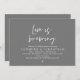 Anuncie su feliz siempre después con estilo con nuestro moderno diseño temático (El amor se está preparando) boda ensayo fiesta de la tarjeta de invitación a la celebración. Es ideal para las parejas que han decidido celebrar la noche anterior a su gran día. Con un diseño sofisticado pero lúdico, esta invitación seguramente marcará el tono para un evento inolvidable. La tarjeta de invitación presenta un diseño de gris oscuro intemporal, añadiendo un toque de elegancia eterna a tu celebración. Diseñado por TeeshaDerrick