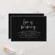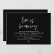 Anuncie su feliz siempre después con estilo con nuestro moderno diseño temático (El amor se está preparando) boda ensayo fiesta de la tarjeta de invitación a la celebración. Es ideal para las parejas que han decidido celebrar la noche anterior a su gran día. Con un diseño sofisticado pero lúdico, esta invitación seguramente marcará el tono para un evento inolvidable. La tarjeta de invitación presenta un elegante diseño negro atemporal, añadiendo un toque de elegancia atemporal a tu celebración. Diseñado por TeeshaDerrick