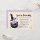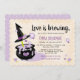 ¡Estas invitaciones a la ducha de novias de Brujas son más dulces que espeluznantes! Te encantarán tus invitados con esta ducha de novia con la temática de Halloween súper adorable, con un caldero lleno de corazones y un agitador de madera con un gorra de brujas adornado con rosas púrpura. En la parte trasera se ha optado por un patrón cardíaco de polka puntal púrpura y blanco pastel. Pintura © Chrissy H. Studios, LLC. Todos los derechos reservados. lav