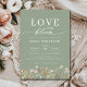 Celebra el amor con nuestra invitación a la ducha de flores silvestres "El amor está en flor". Decorada con flores silvestres vibrantes y delicada vegetación, esta invitación capta la esencia del romance y la belleza natural. Tanto si se trata de una reunión íntima como de una aventura suntuosa, los suaves tonos pastel y los detalles florales intrincados crean un entorno encantador para honrar a la futura novia. Cada invitación está cuidadosamente diseñada para evocar el encantador sentimiento de amor que florece, asegurando que los huéspedes sientan el calor y la alegría de la ocasión desde el momento en que la reciben. Personalizar el texto para incluir detalles esenciales como la fecha, hora y ubicación, y deja que la magia de las flores silvestres prepare el escenario para una memorable ducha de novia. Con su diseño atemporal y su sentimiento sincero, nuestra invitación a la ducha de flores silvestres "Love is Bloom" promete crear recuerdos preciados para la novia y sus seres queridos.