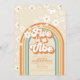 ¡Cinco es un Vibe! Invitación de 5º cumpleaños inspirada en el retro con fuentes y colores de estilo de los años 70, arcoiris y marrones en colores caídos. colores marrón, tostado y naranja.
