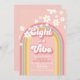 ¡Ocho es un Vibe! Invitación inspirada en el retro para el octavo cumpleaños con fuentes y colores de estilo de los años 70, arcoiris y margaritas en rosa