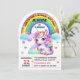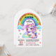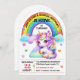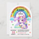 El arcoiris brillante y colorido y la invitación a la fiesta de cumpleaños de Unicornio, cambia el texto a lo que quieras cuando pidas