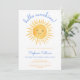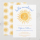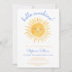 Esta bonita invitación a la ducha de bebé está decorada con un sol acuarela y dice Hello Sunshine! en una tipografía de escritura azul elegante. Perfecto para la ducha de un niño. Personalizable fácil. Acuarela original © Michele Davies.