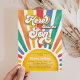 Esta invitación, envuelta en un colorido diseño de arcoiris, es una maravillosa mezcla de estética nostálgica y funcionalidad contemporánea. El motivo es una impresionante gama de tonos rojos, azules, verdes, amarillos y naranjas que crean un ambiente alegre y acogedor justo al lado.
