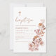 Celebre el bautismo con esta elegante terracota de boho con temática de flor silvestre, invitación al bautismo con una moderna minimalista y sencilla acuarela rústica de boho floral y cruz simple.